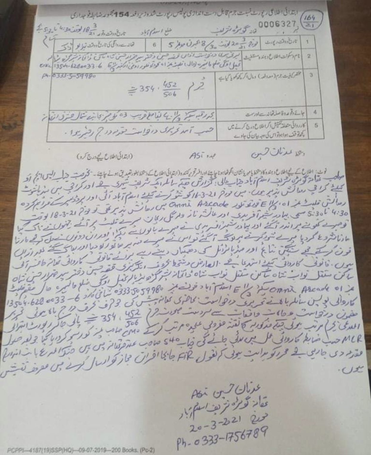 متنازع ٹک ٹاکر اسٹار حریم شاہ نے اپنے اوپر مبینہ قاتلانہ حملے کا مقدمہ اپنی سہیلی اور اس کے ساتھی بہادر شیر کے خلاف درج کروایا۔ ایف آئی آر کے متن میں کہا گیا کہ حریم شاہ کو فلیٹ میں تشدد کا نشانہ بنایا گیا۔ پولیس نے اسلام آباد کے تھانہ گولڑہ شریف میں حریم شاہ پر قاتلانہ حملے کا مقدمہ درج کر لیا۔