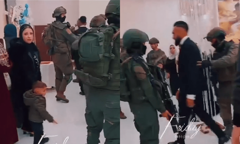 اسرائیلی فوج نے مغربی کنارے کے شہر ہیبرون میں ایک شادی کی تقریب میں گھس کر دولہا کو حراست میں لے لیا جس کی ویڈیو سوشل میڈیا پر وائرل ہو رہی ہے۔