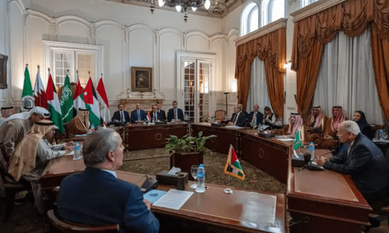 اجلاس میں کہا گیا کہ اسرائیلی فورسز جنگ بندی معاہدے پر عملدرآمد کرتے ہوئے غزہ کی پٹی فوری خالی کریں اور عالمی برادری دو ریاستی حل کے لیے عملی اقدامات کرے۔