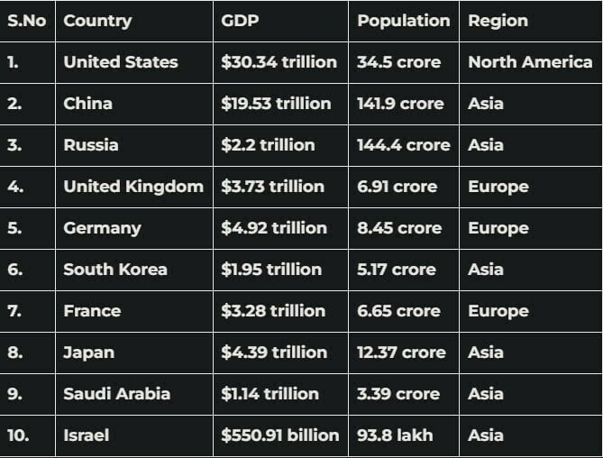 world’s 10 most powerful countries