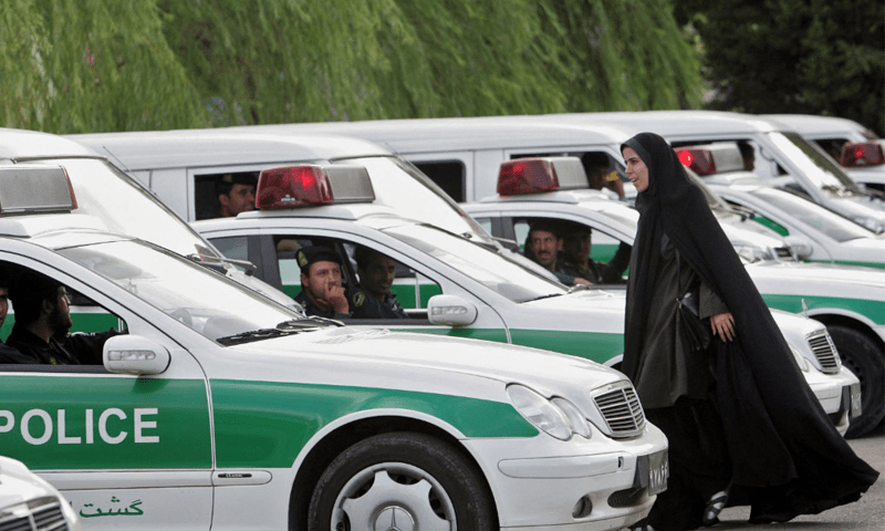 ایرانی خاتون کا غیراخلاقی احتجاج، پولیس اہلکار گرفتاری میں ہچکچاہٹ کا شکار
