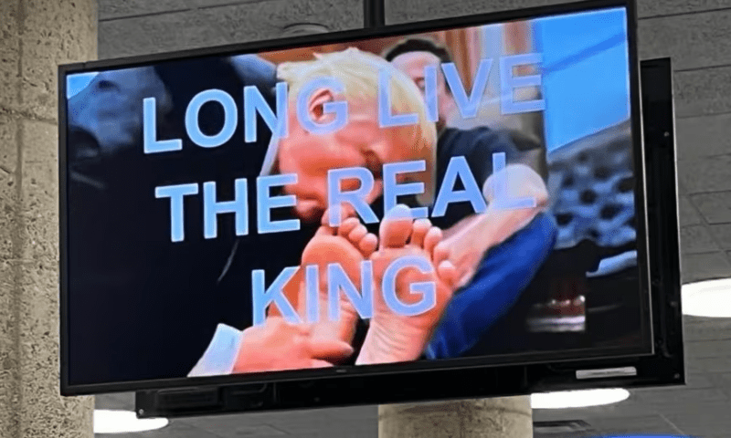 ہیکرز نے امریکی سرکاری دفاتر میں ٹرمپ کی ایلون مسک کے پاؤں چومنے کی جعلی ویڈیو چلا دی