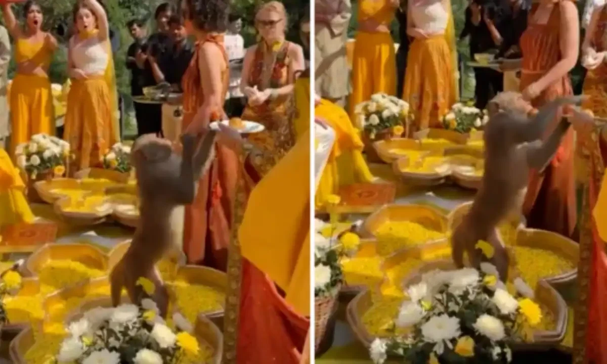 ہلدی کی رسم کے دوران بندر کا حملہ، مہمانوں کی پلیٹوں سے لڈو چرا لیے