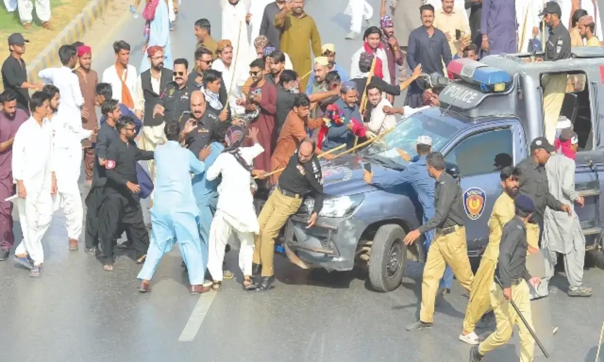 خیرپور اور کراچی میں دھرنے شدت اختیار کرگئے، مظاہرین اور وکلاء کا پولیس سے تصادم، متعدد گرفتار