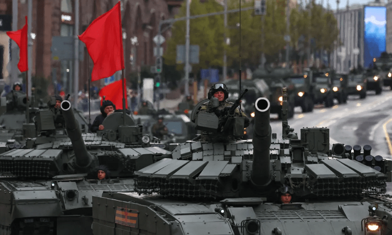 دوسری جنگ عظیم میں نازی جرمنی پر سوویت یونین کی فتح کے 80 سال مکمل ہونے پر ماسکو میں تقریب کا انعقاد کیا گیا جہاں رات گئے ماسکو میں روسی فوج نے ریہرسل کی۔