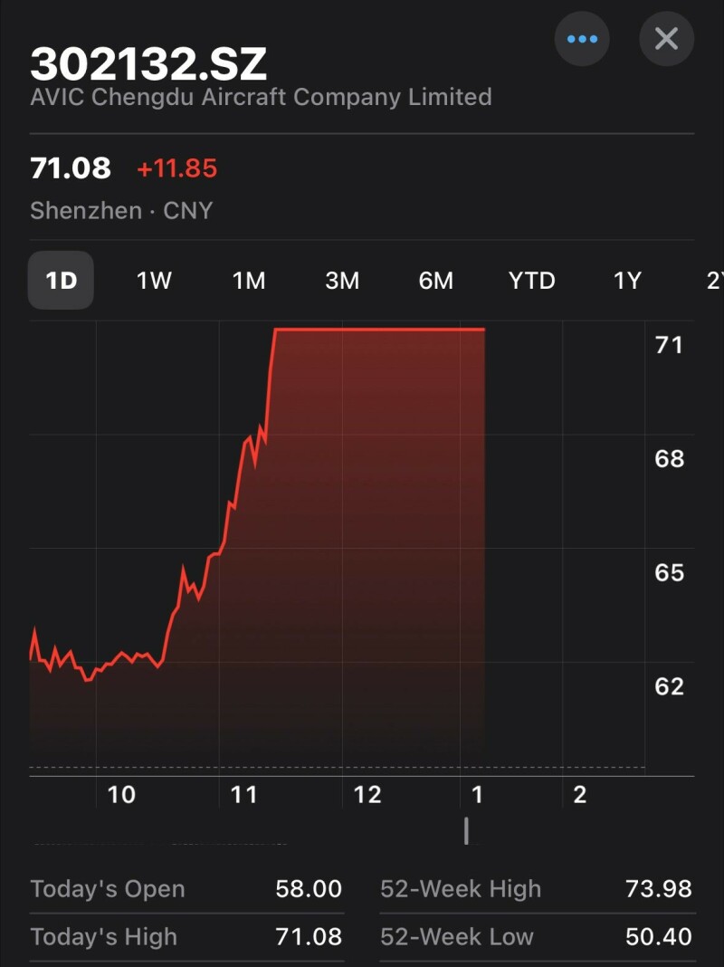 پاکستان کی جانب سے بھارتی فضائیہ کے پانچ جنگی طیارے مار گرائے جانے کے بعد چین کی معروف دفاعی کمپنی ”چینگدو ایرو اسپیس کارپوریشن“ کے شیئرز میں زبردست اضافہ دیکھنے میں آیا ہے۔ یہ کمپنی جدید ”J-10C“ لڑاکا طیارے تیار کرتی ہے، جو پاکستان ایئر فورس کے بیڑے کا اہم حصہ ہیں۔