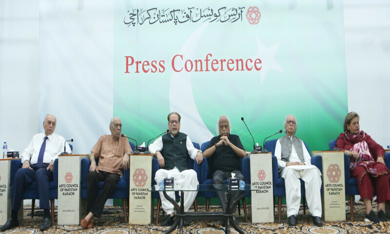 کراچی آرٹس کونسل آف پاکستان کی جانب سے بھارت کے حالیہ جنگی جنون کے خلاف پریس کانفرنس کا انعقاد کیا گیا، پریس کانفرنس میں صدر آرٹس کونسل احمد شاہ ، ادیب و مزاح نگار انور مقصود و دیگر قلم نگاروں نے بھارت کی بزدلانہ جارحیت اور خطے کے امن کو لاحق خطرات پر اظہار خیال کیا گیا۔