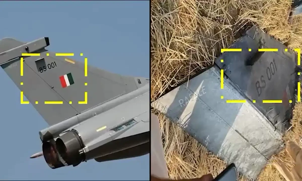 ڈی جی آئی ایس پی آر نے بتایا کہ فوٹیج میں دکھائی گئی ”ٹیل“ بھارتی 17 گولڈن ایرو اسکاڈرن کے رافیل BS-001 طیارے کی ہے، جب کہ فوٹیج میں تباہ ہونے والے طیارے کا انجن بھی دکھایا گیا ہے جو بھارتی طیارے کا ہے۔ انہوں نے کہا کہ ہم 21ویں صدی میں رہ رہے ہیں، نہ کہ 18ویں صدی میں — ہر چیز اپنا نشان چھوڑ جاتی ہے۔
