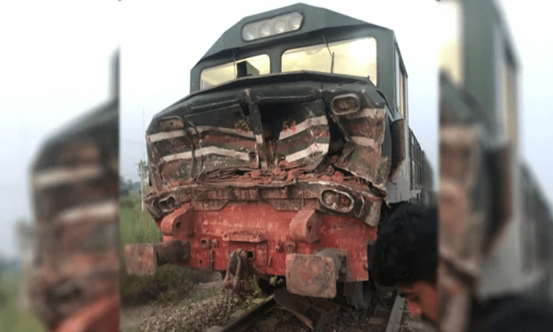 عینی شاہدین نے بتایا کہ ٹرین اینٹوں سے بھری ٹرالی سے ٹکرا کر ریلوے لائن سے تقریباً ایک کلومیٹر نیچے اتر گئی، جس کی وجہ سے ٹرین ڈرائیور اور اسسٹنٹ ڈرائیور زخمی ہوئے۔