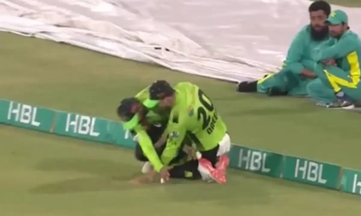 پاکستان سپرلیگ سیزن 10 کے فائنل میں فیلڈنگ کے دوران لاہور قلندرز کے 2 کھلاڑی آپس میں ٹکرا گئے۔