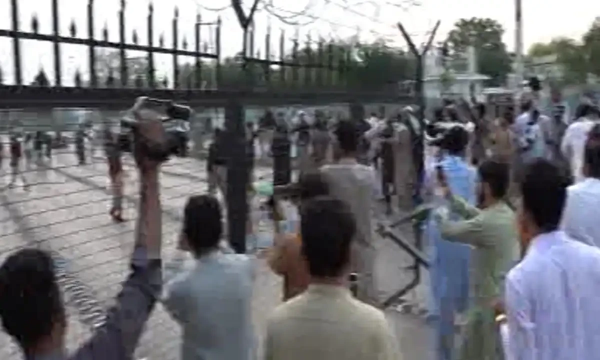 صوبائی صدر کے تقریر کے بعد احتجاجی مظاہرے میں شریک پارٹی کارکنوں نے ریڈ زون میں داخل ہونے کی کوشش کی۔ مشتعل مظاہرین نے خیبرپختونخوا اسمبلی کے باہر لگی آہنی گیٹ پر چڑھ دوڑے اور توڑ پھوڑ کی۔