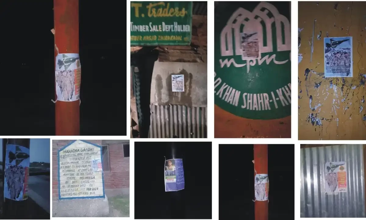 بھارت کے غیر قانونی زیر قبضہ جموں وکشمیر میں ایک مرتبہ پھر پوسٹر چسپاں کیے گئے ہیں جن میں پاکستانی پرچم، آرمی چیف فیلڈ مارشل سید عاصم منیر اور رافیل سمیت دیگر بھارتی جنگی طیاروں کو مار گرانے والے پاکستان کے J-10C لڑاکا طیارے کی تصاویر موجود ہیں۔