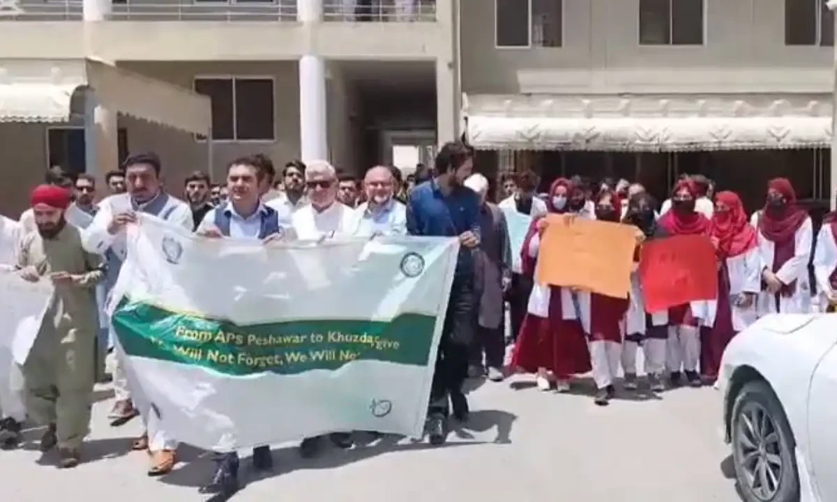 بعد ازاں منعقدہ یکجہتی واک میں طلبہ نے پلے کارڈز اٹھا رکھے تھے جن پر درج تھا ”خضدار کے شہید طلبہ کو انصاف دو، خاموشی غداری ہے“، ”ہم اے پی ایس ہیں، ہم خضدار ہیں، ہم ابھریں گے“، “ نہ بھولیں گے، نہ معاف کریں گے“۔