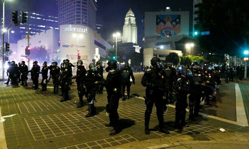 امریکی صدر ڈونلڈ ٹرمپ کے امیگریشن چھاپوں کے خلاف جاری مظاہروں کے دوران توڑ پھوڑ اور لوٹ مار کو روکنے کے لیے لاس اینجلس کے مرکزی علاقے میں دس گھنٹے کا کرفیو نافذ کر دیا گیا ہے۔