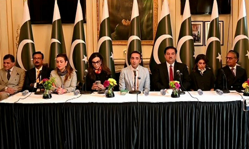 پاکستان پیپلز پارٹی کے چیئرمین، سابق وزیر خارجہ اور پاکستانی سفارتی وفد کے سربراہ بلاول بھٹو زرداری نے لندن میں میڈیا سے گفتگو کرتے ہوئے کہا ہے کہ مسئلہ کشمیر، پانی سمیت تمام تنازعات کا حل صرف اور صرف مذاکرات میں ہے۔ ان کا کہنا تھا کہ بھارت اگر اپنی خارجہ پالیسی میں دہشتگردی کو بطور ہتھیار ترک نہیں کرتا تو عالمی برادری، بالخصوص امریکا کو چاہیے کہ وہ بھارت کو کان سے پکڑ کر مذاکرات کی میز پر لائے، کیونکہ یہی عالمی مفاد میں ہے۔