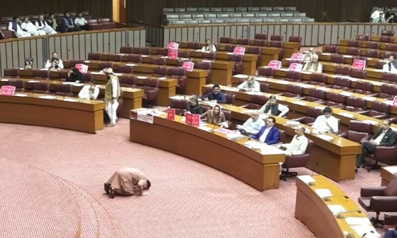 قومی اسمبلی اجلاس کے دوران اس وقت دلچسپ صورتحال پیدا ہوگئی جب رکن اسمبلی جمشید دستی نے پاکستان تحریک انصاف کے رہنماؤں کے سامنے ایوان کے فلور پر ناک رگڑنا شروع کردی، ہاتھ جوڑے اور کان بھی پکڑے لیکن یہ سب کچھ کیوں کیا وجہ سامنے نہ آسکی۔