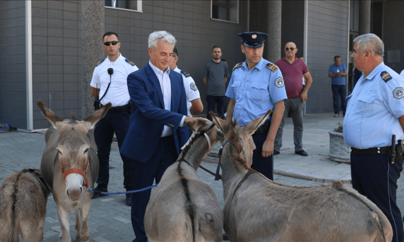 کوسوو میں کئی ماہ سے جاری سیاسی تعطل کے خلاف احتجاج کے طور پر ایک ایریانیٹ کوچی نامی وکیل نے جمعرات کو پارلیمنٹ کے احاطے پر چار گدھوں کو لا کھڑا کر دیا۔
