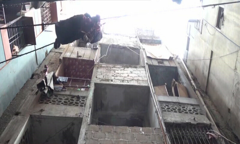 لیاری میں ایک اور عمارت ڈولنے لگی، 4 منزلہ عمارت کا زینہ گر گیا، دیواروں میں دراڑیں