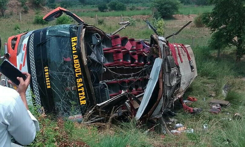 راولپنڈی سے لاہور جانے والی بس چکری انٹرچینج کے قریب حادثے کا شکار ہوگئی، جس کے نتیجے میں 5 افراد جاں بحق اور 41 زخمی ہوگئے۔