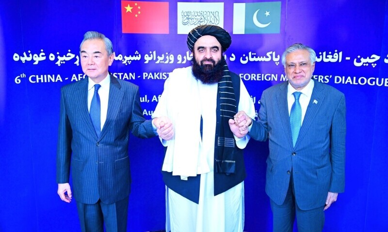 پاکستان کے نائب وزیراعظم و وزیر خارجہ، سینیٹر محمد اسحاق ڈار نے چین، پاکستان اور افغانستان کے وزرائے خارجہ کے چھٹے سہ فریقی اجلاس کے دوران افغان عبوری وزیر خارجہ مولوی امیر خان متقی سے ملاقات کی۔