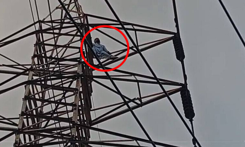 غربت و فاقوں سے تنگ ، بیوی سے جھگڑا رکشہ ڈرائیور اپنی زندگی کا خاتمہ کرنے کے لئے ہائی وولٹیج کھمبے پر چڑھ گیا۔