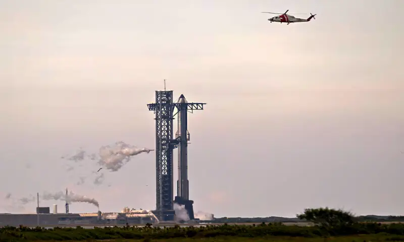 برطانوی خبر رساں ادارے ’رائٹرز‘ کے مطابق 232 فٹ اونچا ’سپر ہیوی بوسٹر‘ اور 171 فٹ اونچا ’اسٹارشپ‘ راکٹ ایندھن سے بھرا ہوا تھا۔ مقامی وقت کے مطابق شام 7 بجکر 35 منٹس پر اڑان متوقع تھی۔ تاہم، اسپیس ایکس نے اعلان کیا کہ لانچ پیڈ کے گراؤنڈ سسٹمز کو درست کرنے کے لیے مزید وقت درکار ہے۔