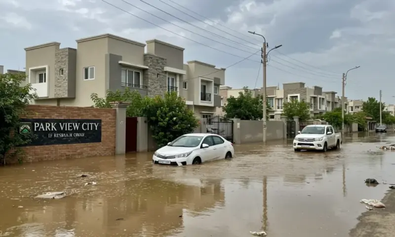 سیلاب کے باعث زیرِ آب آنے والی پارک ویو سوسائٹی سے متعلق بعض سیاسی رہنماؤں نے حالیہ دنوں میں دعویٰ کیا ہے کہ یہاں گھروں کی تعمیر باقاعدہ منصوبہ بندی کے تحت ہوئی تاہم سوشل میڈیا پر سامنے آنے والی ویڈیوز کچھ اور ہی کہانی پیش کر رہی ہیں۔