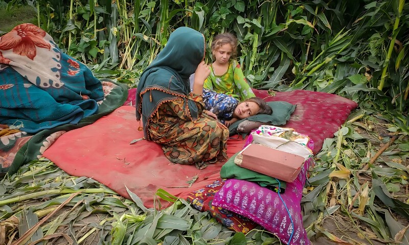 بچیوں سمیت ماں کی کھلے میدان میں بے بسی