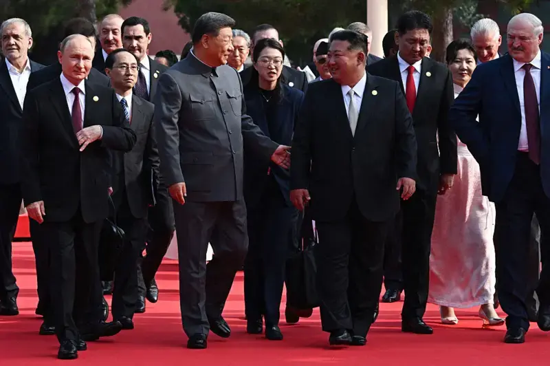 تیانمن اسکوائر پر ہونے والی تقریب میں وزیراعظم شہبازشریف، شمالی کوریا کے رہنما کم جونگ اُن، روسی صدر ولادیمیر پیوٹن اور ایران کے صدر مسعود پزشکیان سمیت 26 عالمی رہنما شریک ہوئے۔