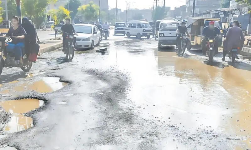 کراچی کی سڑکوں کی حالت بھی ایسی ہے جیسے مرض الموت میں مبتلا ہو، جگہ جگہ چکن پوکس سے روشنی پھوٹتی ہوئی محسوس ہوتی ہے۔ ایک کھڈا ختم نہیں ہوتا کہ دوسرا لپک آتا ہے۔ حرکتِ قلب بڑھ جاتی ہے دل بے ساختہ پکار اٹھتا ہے:
