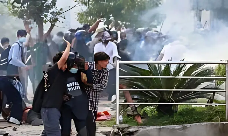 رپورٹس کے مطابق پولیس نے مظاہرین کو منتشر کرنے کے لیے آنسو گیس، واٹر کینن اور ربڑ کی گولیاں استعمال کیں۔ نزدیکی سول اسپتال کی اطلاعاتی افسر رنجنا نیپال کے مطابق، ”آنسو گیس کے اثرات اسپتال تک پہنچ گئے جس سے ڈاکٹروں کے لیے کام کرنا مشکل ہو گیا۔ میں نے اسپتال میں ایسی صورتحال پہلے کبھی نہیں دیکھی۔“