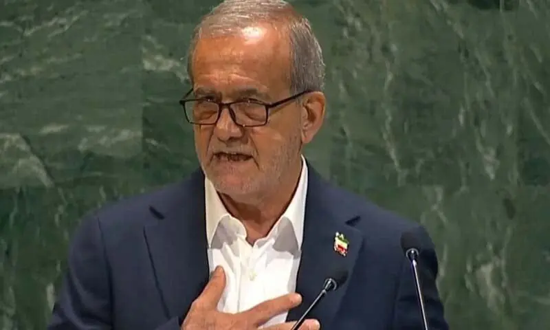 ایرانی صدر مسعود پزشکیان نے اقوام متحدہ کی جنرل اسمبلی سے خطاب کرتے ہوئے کہا کہ ہم سعودی عرب اور پاکستان کے درمیان دفاعی معاہدے کو خوش آمدید کہتے ہیں، یہ معاہدہ مسلم ممالک کے ساتھ مل کر علاقے کی سلامتی کے لیے اچھا آغاز ہے۔