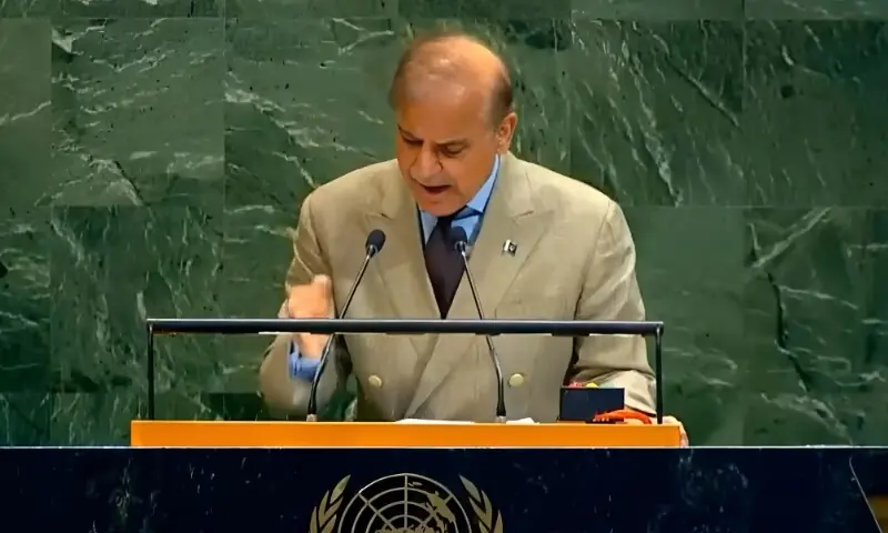 جمعے کو وزیراعظم شہبازشریف نے اقوام متحدہ کی جنرل اسمبلی کے اجلاس سے خطاب کرتے ہوئے موسمیاتی تبدیلی کے تباہ کن اثرات پر عالمی برادری کی توجہ مبذول کرائی۔ اس دوران جذباتی انداز میں ڈائس پر مکے برسائے، جس پر ہال تالیوں سے گونج اٹھا۔