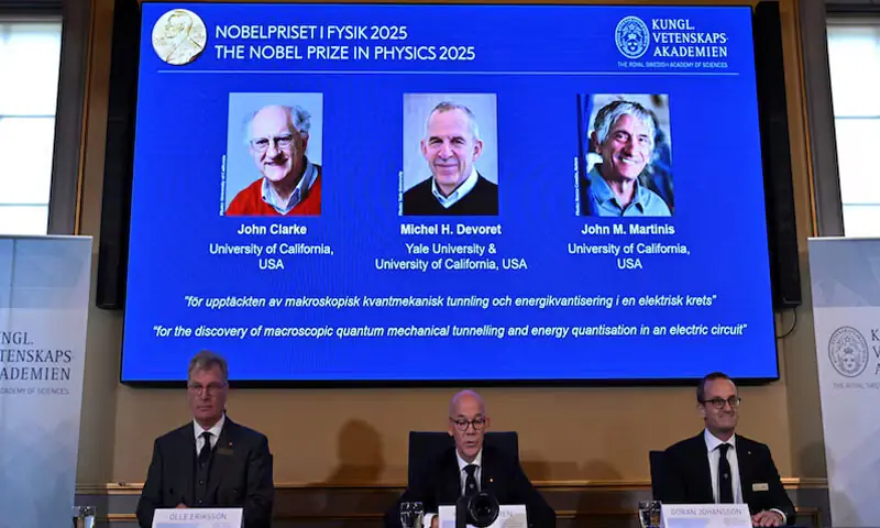 امریکا کے تین سائنس دانوں کو 2025 کے نوبیل انعام برائے طبیعیات سے نواز دیا گیا ہے۔ جان کلارک، مشیل ڈیوریٹ اور جان مارٹینِسکو کو یہ انعام اُن تجربات پر دیا گیا جن سے کوانٹم طبیعیات کے اصولوں کو عملی طور پر ثابت کیا گیا۔