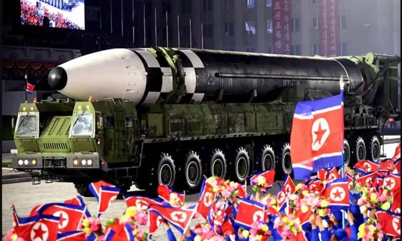 شمالی کوریا کے رہنما کم جونگ اُن کی سربراہی میں جمعہ کی شب ایک شاندار فوجی پریڈ کا انعقاد کیا گیا. پریڈ میں شمالی کوریا کے جدید ترین بین البرِاعظمی بیلسٹک میزائل ’ہواسونگ-20‘ کو نمائش کے لیے پیش کیا گیا۔ یہ میزائیل بیک وقت 20 روایتی یا نیوکلیئر وارہیڈز لے جانے کی صلاحیت رکھتا ہے۔