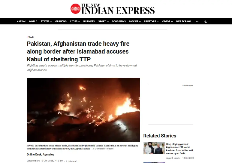 ہفتے کی رات شروع ہونے والی پاک افغان کشیدگی کے دوران بھارت اپنے روایتی پروپیگنڈے سے باز نہ آیا۔ افغانستان کی جانب سے پاک افغان سرحد پر جارحیت شروع ہوتے ہی بھارتی میڈیا اور سوشل میڈیا پروپیگنڈا مشین نے دعویٰ کیا کہ افغان طالبان نے پاکستان کا جنگی طیارہ مار گرایا۔ تاہم، ہمیشہ کی طرح بھارت کے اس جھوٹ کی حقیقت سامنے آگئی ہے۔