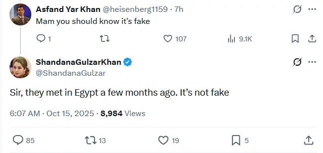 ایک صارف نے جب شاندانہ سے وضاحت پوچھی تو انہوں نے جواب دیا: ’سر، وہ مصر میں چند ماہ پہلے ملے تھے، یہ جعلی نہیں ہے۔‘