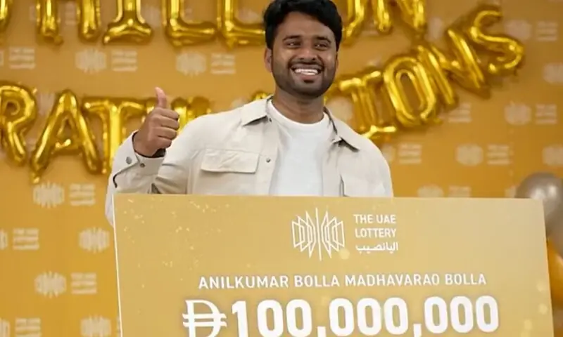 یوں اچانک قسمت مہربان ہوجائے، خواب سچ ہو جائیں تو سب جادو جیسا لگنے لگتا ہے، اور یہی ہوا 29 سالہ انل کمار بولا کے ساتھ، قسمت نے انہیں دبئی لاٹری کے سب سے بڑے جیک پاٹ کا مالک بنا دیا اور انہوں نے متحدہ عرب امارات کی تاریخ کی سب سے بڑی لاٹری جیت کر 10 کروڑ درہم کے مالک بن گئے۔