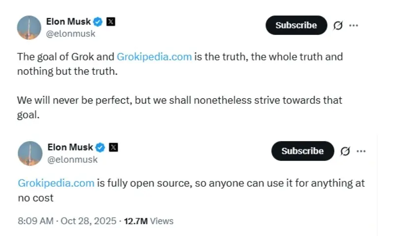 ایلون مسک نے ایک اور نیا پلیٹ فارم ”گروکی پیڈیا“ متعارف کرا دیا ہے جو کہ مصنوعی ذہانت پر مبنی آن لائن انسائیکلوپیڈیا ہے۔ اس پلیٹ فارم کو وکی پیڈیا کا متبادل قرار دیا گیا ہے