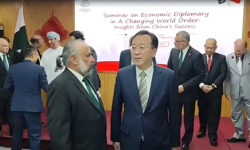 چین کے قونصل جنرل نے اقتصادی سفارتکاری پر سیمینار کے کامیاب انعقاد پر منتظمین کو مبارکباد پیش کی اور اسے علاقائی و عالمی اقتصادی رجحانات کے بہتر فہم کے لیے بروقت اور اہم اقدام قرار دیا۔