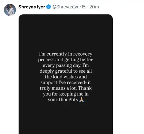 موت کے منہ میں پہنچنے کے بعد بھارتی کرکٹر شریاس ایئر کا پہلا پیغام