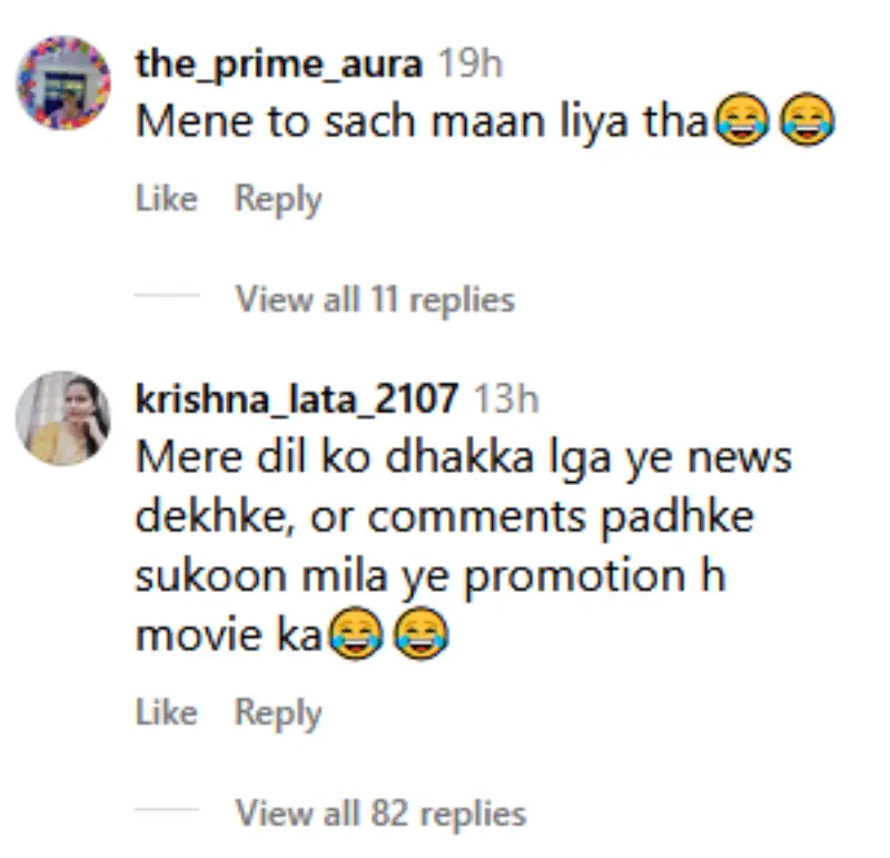 ویڈیو دیکھ کر ایک انسٹاگرام صارف کا کہنا تھا کہ، ”میں نے سچ ہی مان لیا تھا۔“