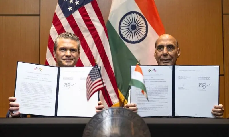 بھارت اور امریکا نے دفاعی تعاون کو فروغ دینے کے لیے 10 سالہ فریم ورک معاہدہ پر دستخط کر دیے۔ یہ معاہدہ امریکی وزیرِ دفاع پیٹ ہیگسیتھ اور بھارتی وزیرِ دفاع راج ناتھ سنگھ کی ملاقات کے بعد کوالالمپور میں طے پایا۔