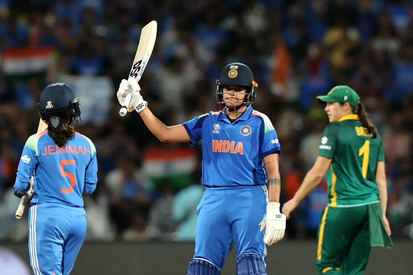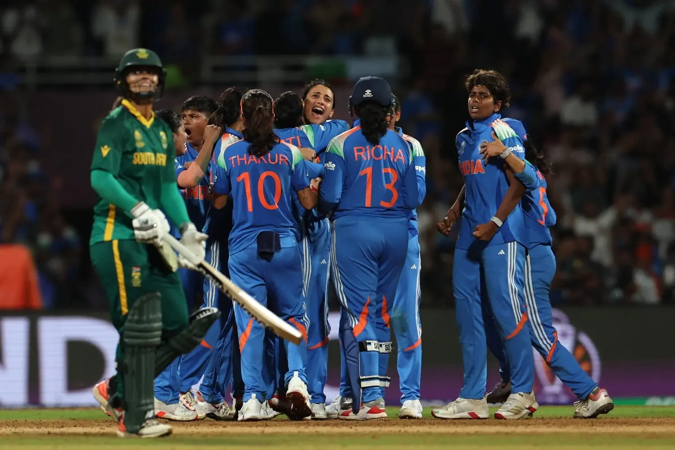 بھارت کی جانب سے شفالی ورما نے 87، دپتی شرما نے 58 اور سمرتی مندھانا نے 45رنز بنائے۔ بھارت کے 298 رنز کے جواب میں جنوبی افریقی ٹیم 246رنز پر آؤٹ ہوگئی۔ پروٹیز کپتان لورا وولوارٹ نے 101رنز کی اننگز کھیلی لیکن وہ اپنی ٹیم کو فیصلہ کن معرکہ نہ جتواسکیں، اُنہوں نے گیارہ چوکے اور ایک چھکا لگایا۔