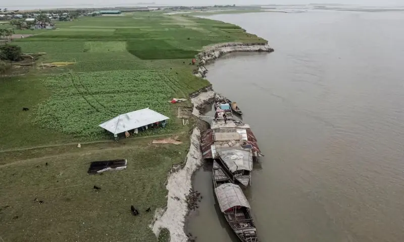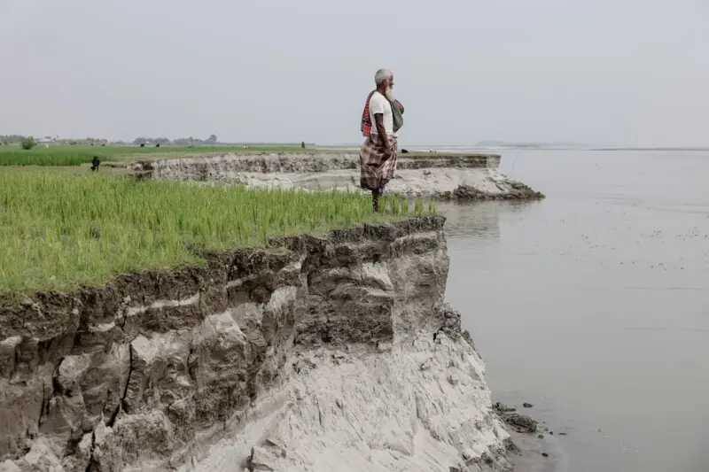 70 سالہ کسان حبیب الرحمٰن نے رائٹرز سے گفتگو کرتے ہوئے کہا کہ، “پانی کبھی اطلاع نہیں دیتا۔ رات کو سوتے ہیں اور صبح اٹھتے ہیں تو دریا کا کنارہ بہہ کر پیچھے ہٹ چکا ہوتا ہے۔ آنکھ کھلتی ہے تو سب کچھ ختم۔ زندگی میں سکون نہیں۔”