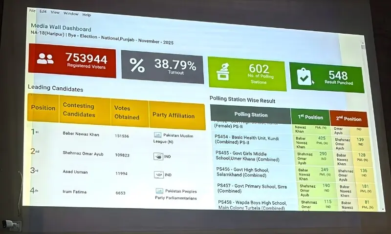 این اے 18 ہری پور سے بھی ن لیگ کے بابر نواز فاتح قرار پائے جبکہ پنجاب اسمبلی کے حلقہ پی پی 98 فیصل آباد سے آزاد امیدوار علی تبسم کامیاب ہوئے۔