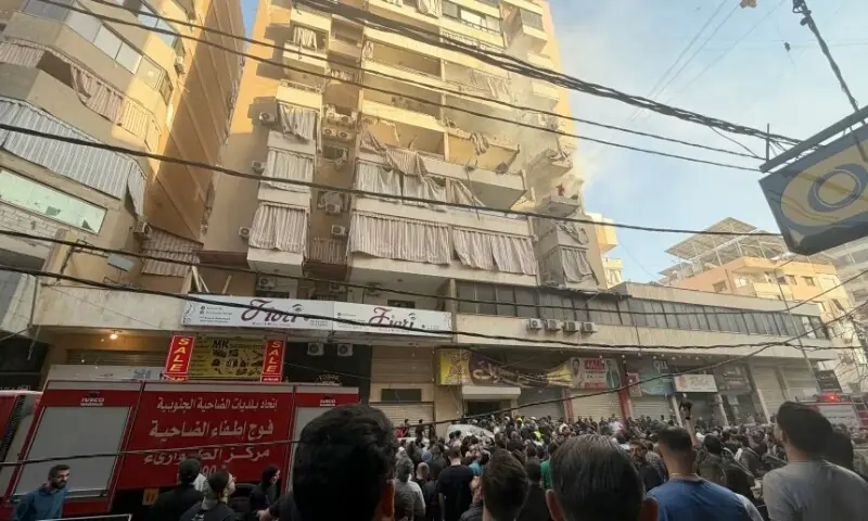 لبنان کی وزارتِ صحت کے مطابق بیروت کے مضافات میں حاجت حریق کے گنجان آباد علاقے میں ایک اپارٹمنٹ بلڈنگ کی چوتھی یا پانچویں منزل سے دھواں اٹھتا دکھائی دیا، اور حملے میں پانچ افراد جاں بحق اور 28 زخمی ہوئے۔