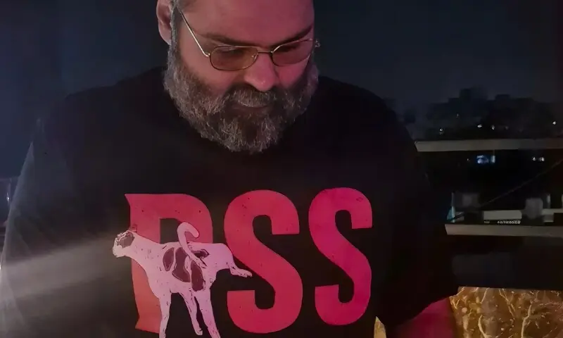 تصویر میں کامرا کی شرٹ پر ایک کتے کی تصویر اور ایک حوالہ موجود ہے جو ممکنہ طور پرآر ایس ایس کی طرف اشارہ کرتا ہے، اگرچہ تصویر میں مکمل ’ر‘ نہیں دکھائی دیتی، جس کی وجہ سے کچھ لوگوں کا ماننا ہے کہ یہ ’پی ایس ایس‘ بھی ہو سکتا ہے۔