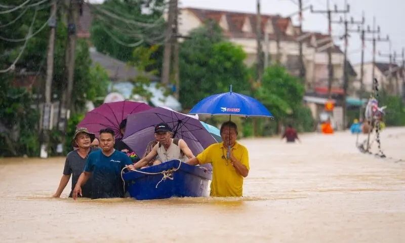 تھائی لینڈ میں 400 ملی میٹر سے زائد بارش نے 300 سالہ ریکارڈ توڑ دیا، جہاں بارشوں اور سیلاب نے تباہی مچادی، جس کے باعث اموات 33 ہوگئیں جب کہ رسیکیو ٹیمیں کشتیوں میں لوگوں کو محفوظ مقامات پر منتقل کرنے لگیں۔