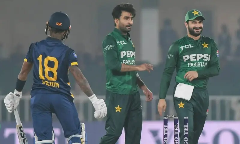 پاکستان اور سری لنکا کے درمیان سہہ ملکی ٹی 20 سیریز کا آخری گروپ میچ راولپنڈی کرکٹ اسٹیڈیم میں کھیلا جارہا ہے، جہاں میچ کا ٹاس پاکستان کے کپتان سلمان علی آغا نے جیت کر سری لنکن ٹیم کے کپتان داسن شانکا کو پہلے بیٹنگ کی دعوت دی۔
